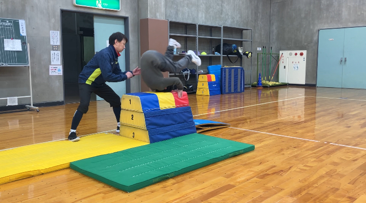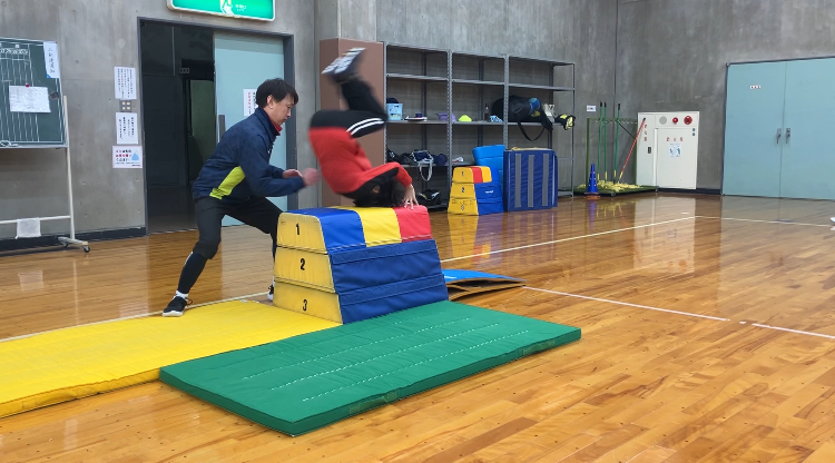 伊勢市小俣総合体育館(火)台上前転‼️ 山下蓮 2025年3月11日 伊勢市小俣総合体育館(火) 3月11日 今月は台上前転をしています‼️ しっかり踏み切ってお尻が上がり頭の後ろで上手に回れています‼️素晴らしい‼️👏👏👏 来週が最後のレッスンです‼️楽しく頑張ろう‼️