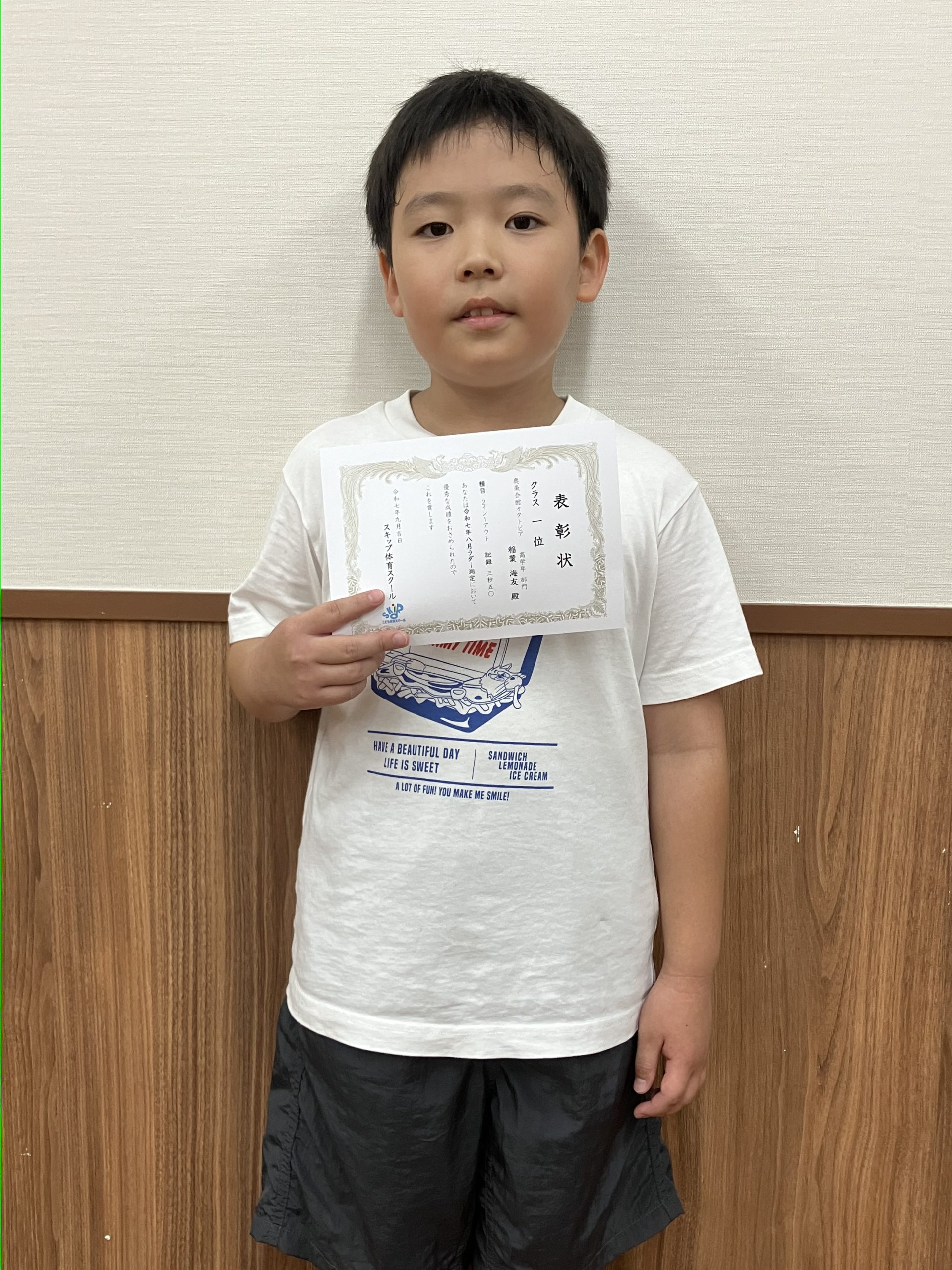 クラス1位 いなば かいとくんおめでとう‼️