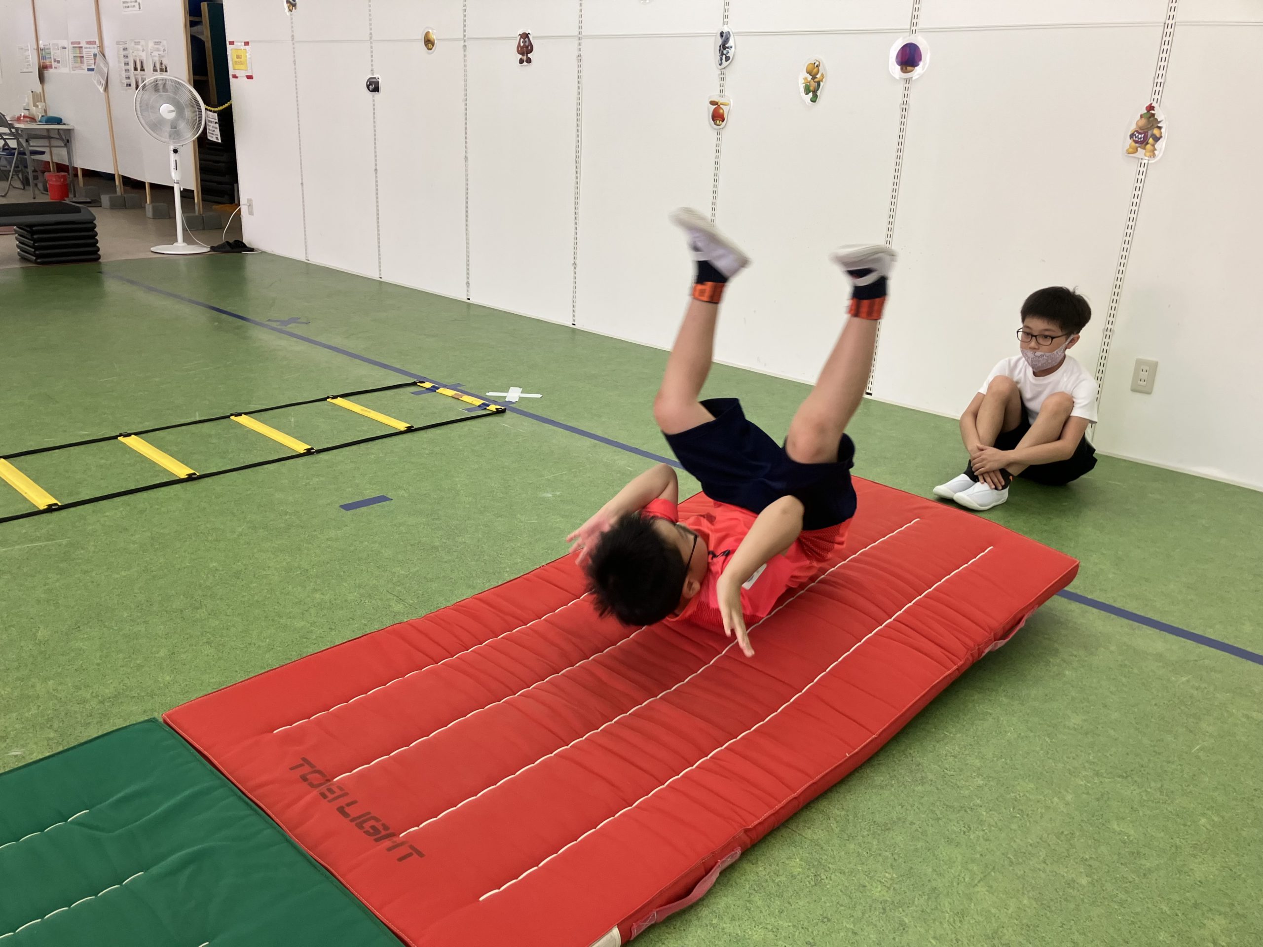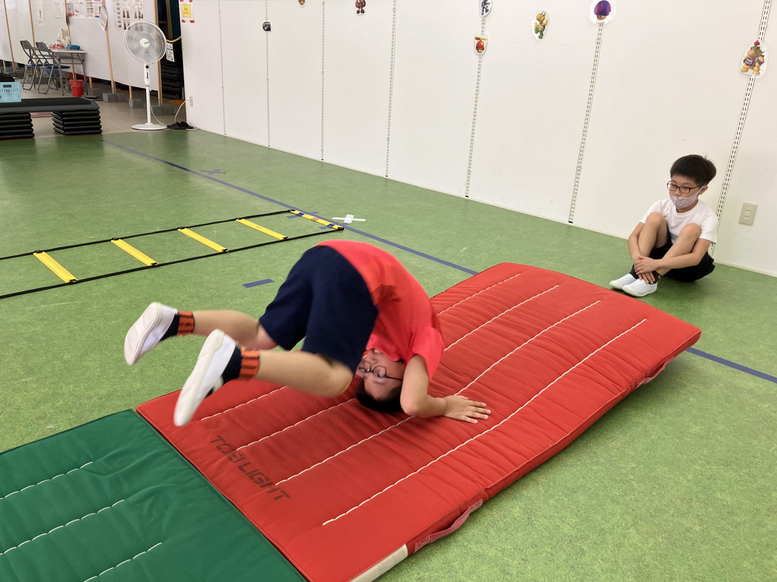 志摩市 阿児(火)マット運動、後転を行いました😙! 田中亮 2025年5月14日 なかなか上手く回れない子、回れても正座で終わってしまう子、脚が開いてしまう子、歪んでしまう子など、それぞれの子供で改善点は様々ですが、ポイントを少し意識すると、ちょっとずつですがとても上手に回れるようになってきます😁! 志摩市阿児5/14(水) マット運動の後転を行いました👍! 失敗を怖がらす、どんどんチャレンジしましょう💪!