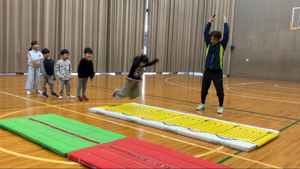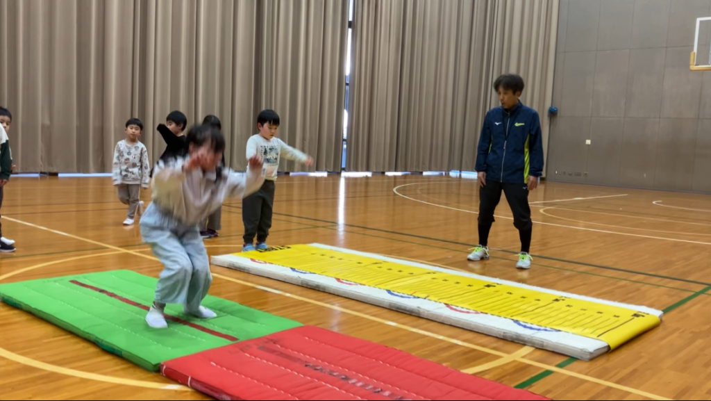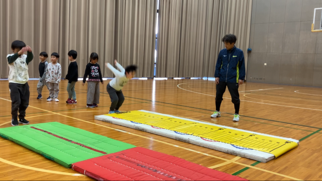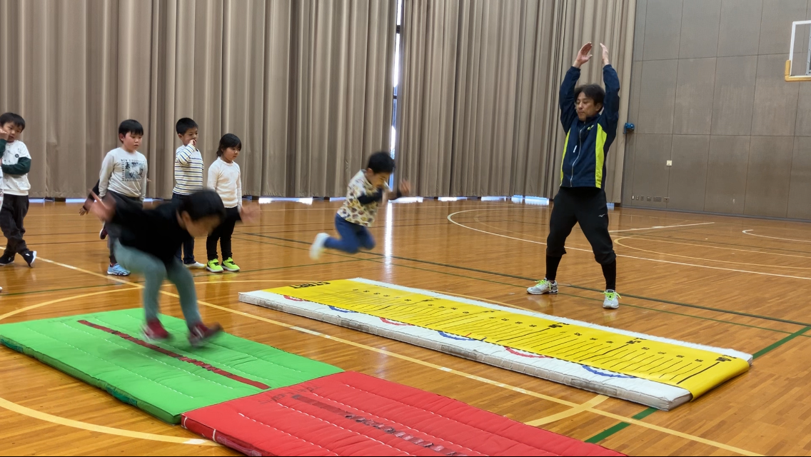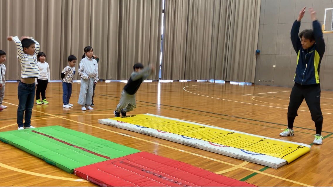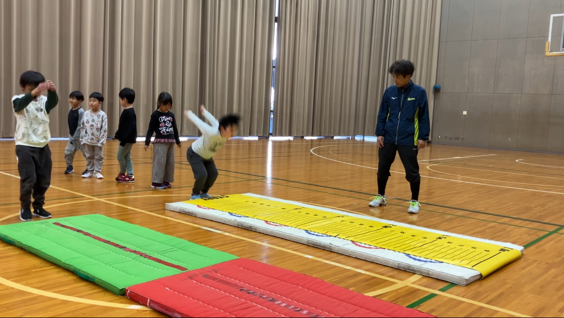 常滑市 常滑市体育館 ジャ〜ンプ💨「立ち幅跳び」💪 濱田隆儀 2025年4月15日 常滑市常滑市体育館4/15(火)小学生(低学年)クラスは、体力測定の練習で「立ち幅跳び💨」にチャレンジ💪 実際の測定シートを使ってのジャンプ💨 しっかりと腕を振り上げて! おもいっきりジャ〜ンプ🚀 着地もしっかり!! 新1年生は初めてでしたが、みんなよく頑張りました👏👏👏