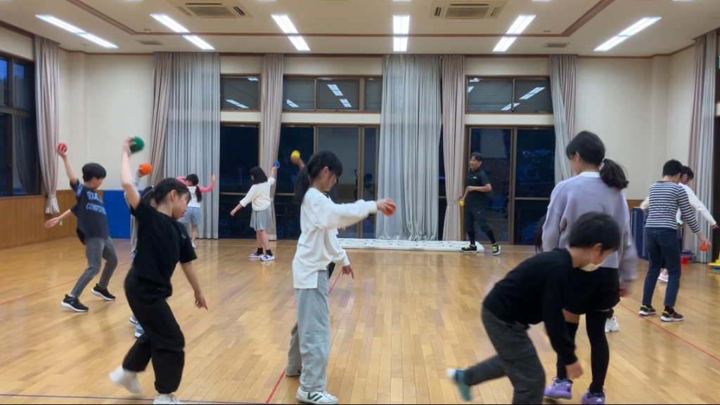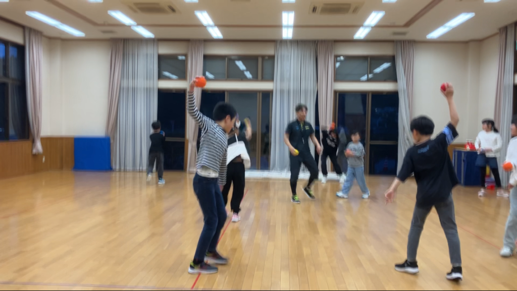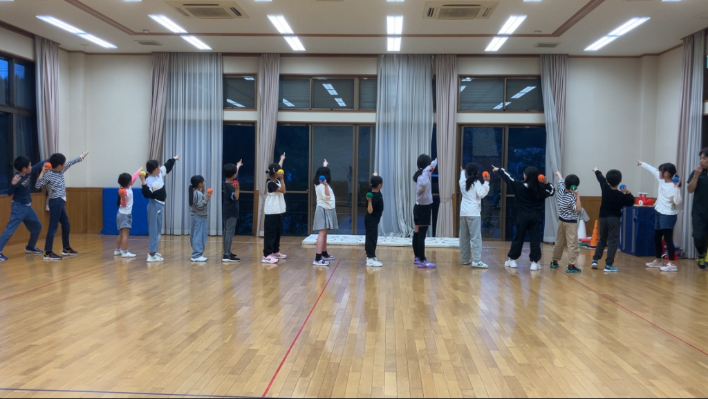 常滑市 久米公民館 ソフトボール投げ⚾️ 濱田隆儀 2025年4月18日 常滑市久米公民館4/18(金)小学生(高学年)クラスの体力測定練習では、「ソフトボール投げ⚾️」を練習💪 まずは膝をついて投げることで上半身の使い方の練習💪 次は立って練習💪みんな良い姿勢です👍 投げろ〜〜!!! 次は床に投げたボールを天井まで跳ね返らせる練習💪 なかなか届かないぞ〜😁 体力測定8種目をいろいろな形で練習して、小学校で好成績をGETするぞ