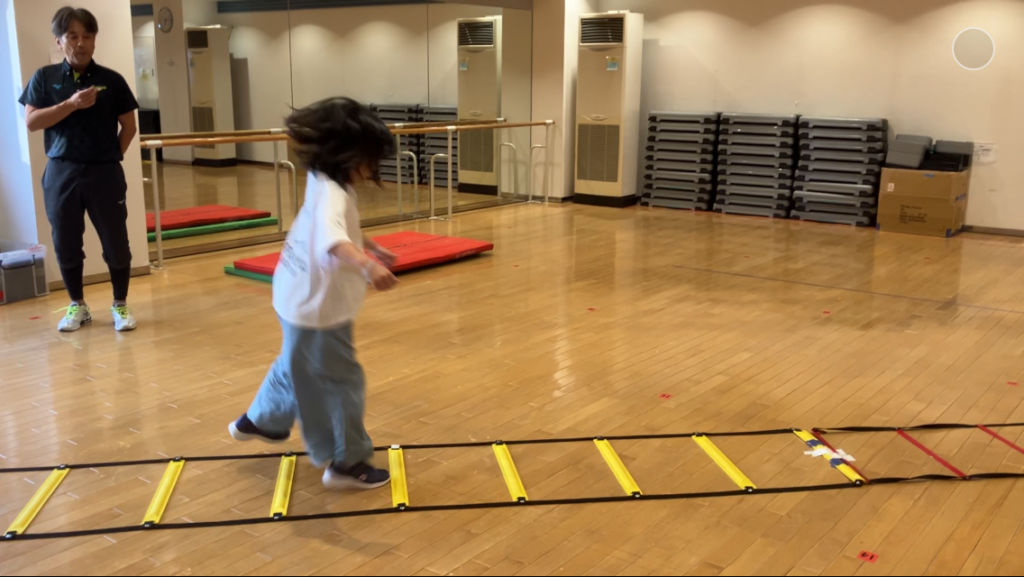 「ケンパー」や「1つ飛ばし」など、足を素早く動かす練習をみんなで頑張りました👍