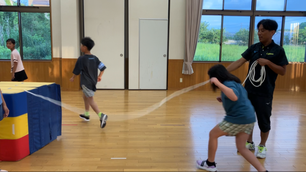 常滑市久米公民館7/11(金)小学生(高学年)クラスの「大縄」では、「8の字跳び」にチャレンジ💪