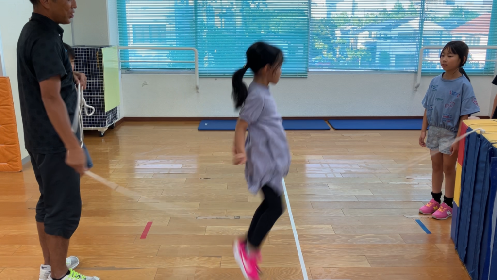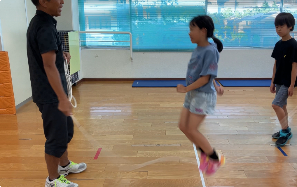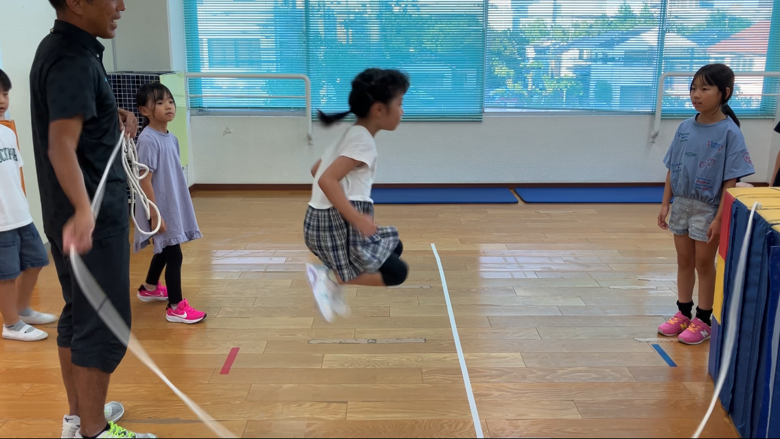 大府市 スイムクラブ大府(月) 連続跳び💨 濱田隆儀 2025年7月21日 大府市スイムクラブ大府(月)7/21小学生(低学年)クラスの「大縄(8の字とび)」は前回よりも回数アップ!!みんなタイミングを合わせることに慣れてきましたね👍