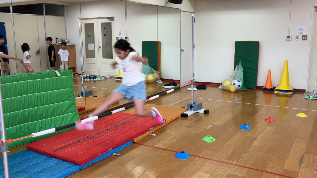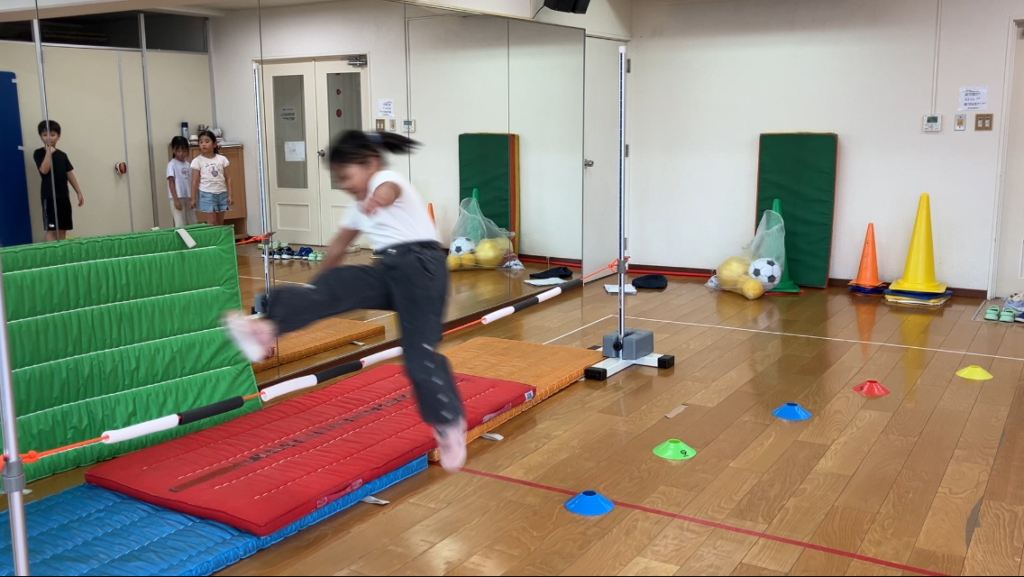 大府市 スイムクラブ大府(月) 高跳び💨 濱田隆儀 2025年8月18日 大府市スイムクラブ大府(月)8/18小学生(低学年)クラスでは「高跳び💨」にチャレンジ💪 小学校低学年の時から「高跳び」を練習することで、小学校授業で「高跳び」の時には、助走、跳び方が身についてるね👍