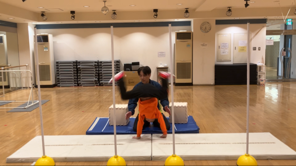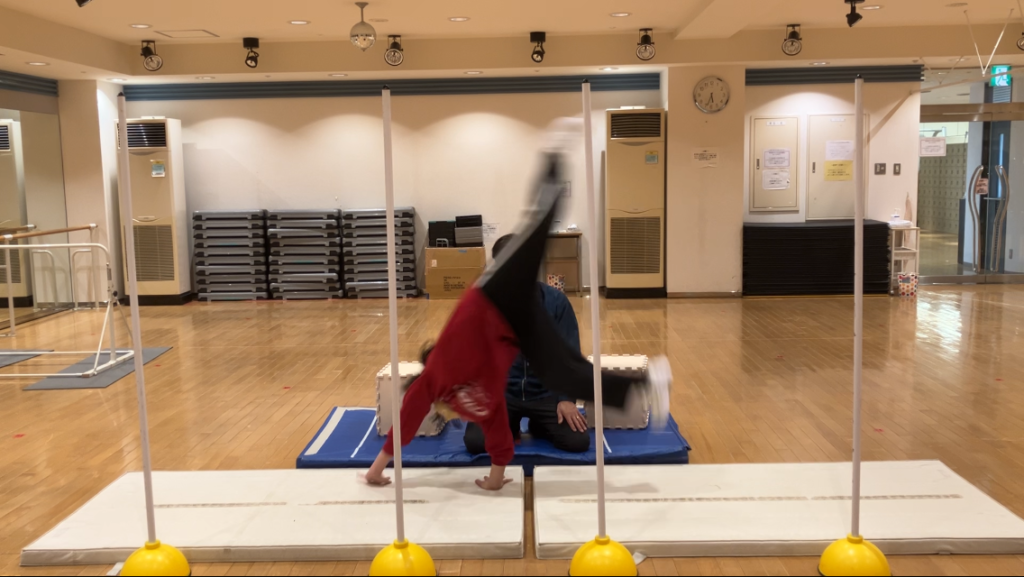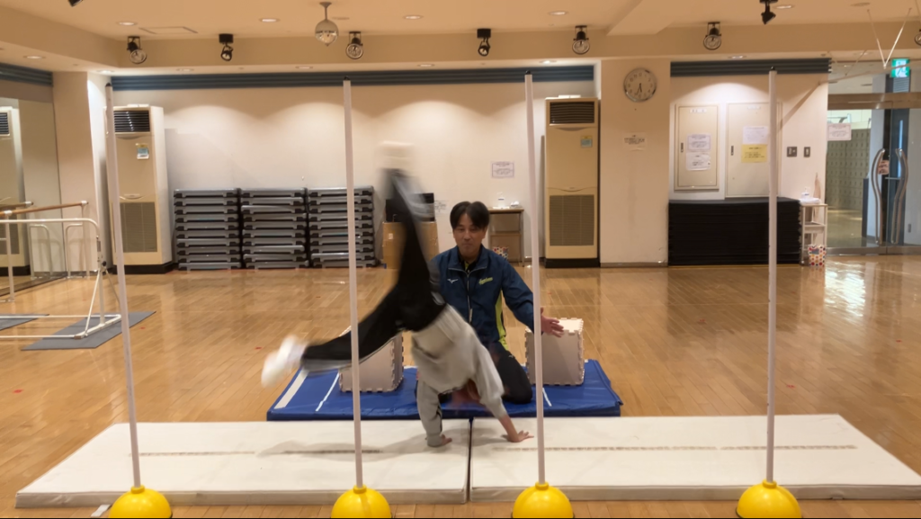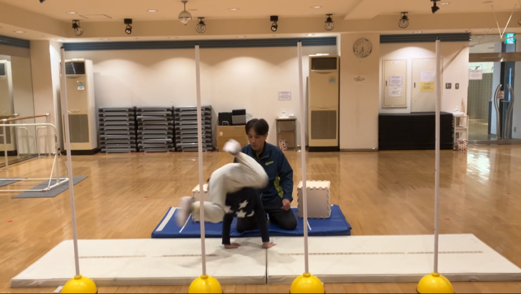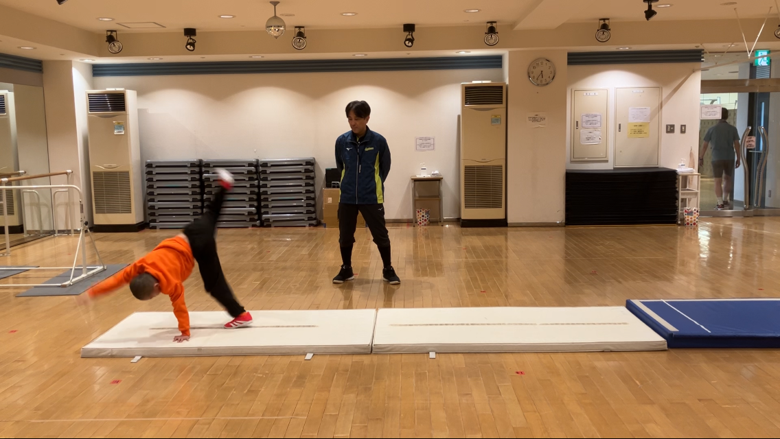 ラストは「側転→前転→開脚後転」の合わせ技!!!