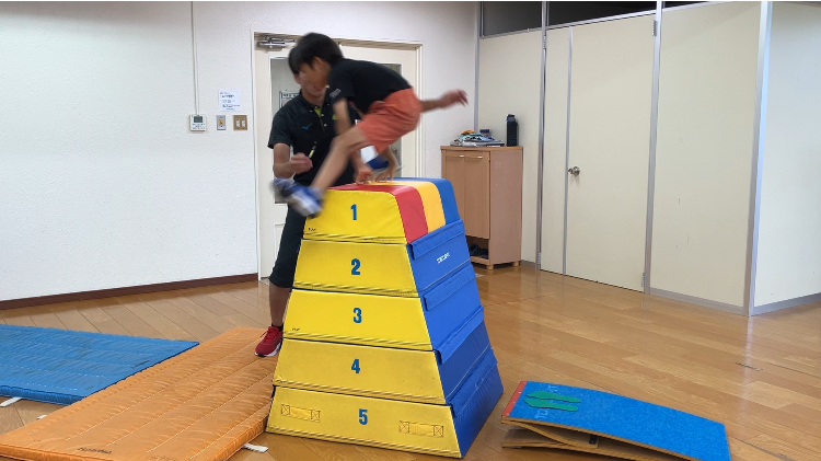 大府市 スイムクラブ大府(水)とび箱 8段✨️ 内山裕斗 2025年7月16日 スイムクラブ大府(水)7月ラストの練習です‼️ ラストは5段にチャレンジしました‼️ スキップ体育スクールで使用しているとび箱の5段は小学校にある木のとび箱の8段と同じ高さです😳 ロイター板をしっかり踏み切って手は黄色‼️ 身体を前にたおして‼️ ナイス〜👍 来月も頑張ろう💪🔥
