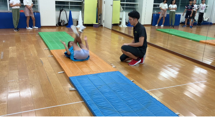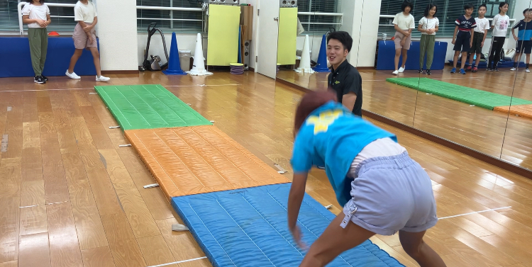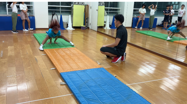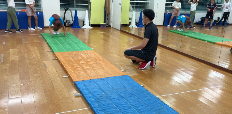 大府市 スイムクラブ大府(水)マット運動 連続技🔥 内山裕斗 2025年9月17日 本日の体育スクールでは、マット運動の連続技にチャレンジしました🔥 開脚前転 前転をしなから足をクロス 立ってターン 開脚後転 3つの技を連続で行いました👏 来月は鉄棒とトランポリンを行います🔥 逆上がりができるように頑張るぞ〜💪
