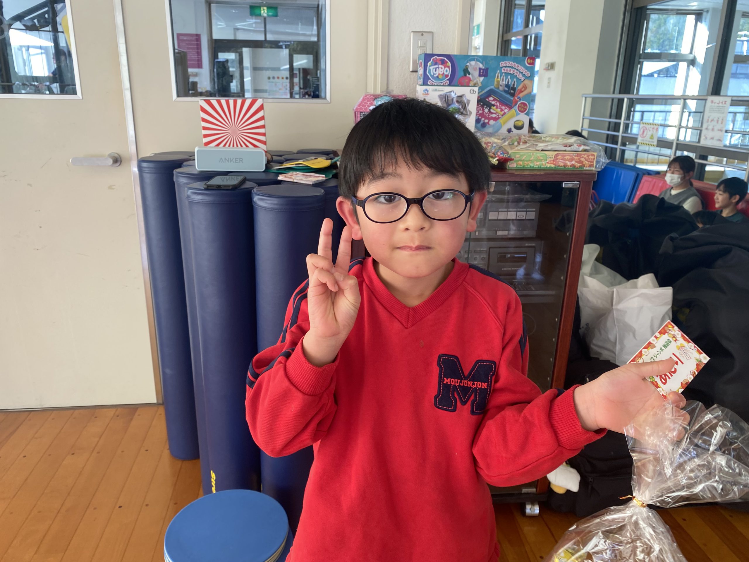 みんなにくじを引いてもらい当たりくじを引いたお友達におもちゃプレゼントしました!