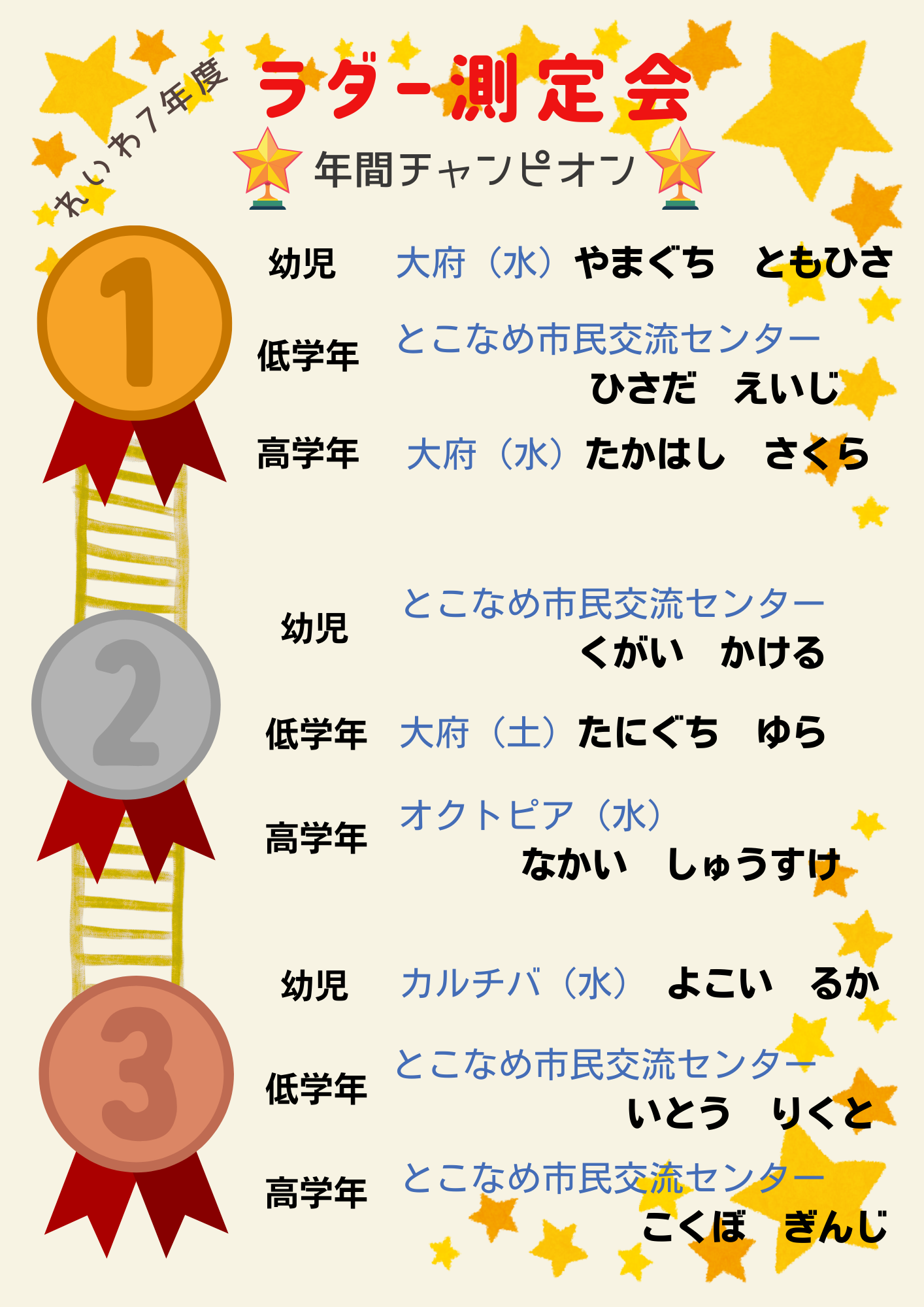大府市 スイムクラブ大府(水)年間ラダーチャンピオン👑🏆🥇